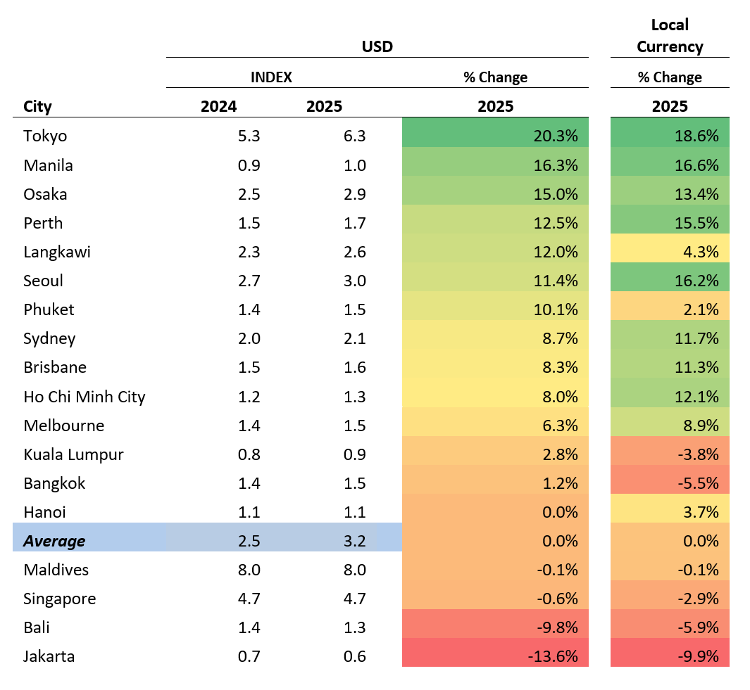 Other than performance of the hotels, the index above has reflected the appreciation / depreciation of their respective local currency against the USD